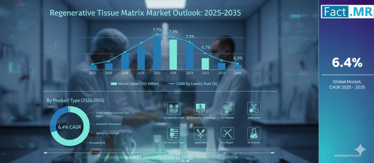 ROCKVILLE PIKE, MD, UNITED STATES, October 20, 2025 /EINPresswire.com/ -- As the global regenerative tissue matrix (RTM) market is projected to grow from USD 1,332.6 million in 2025 to USD 2,254.7 million by 2035, at a compound annual growth rate (CAGR) of 5.4%, leading manufacturer is announcing its strategic focus on advancing biologic tissue scaffolding solutions and strengthening its leadership in regenerative medicine. This growth underscores a significant shift toward biologically integrative, patient-specific solutions in reconstructive and wound care procedures.Regenerative Tissue Matrix Market Advancing Regenerative Solutions