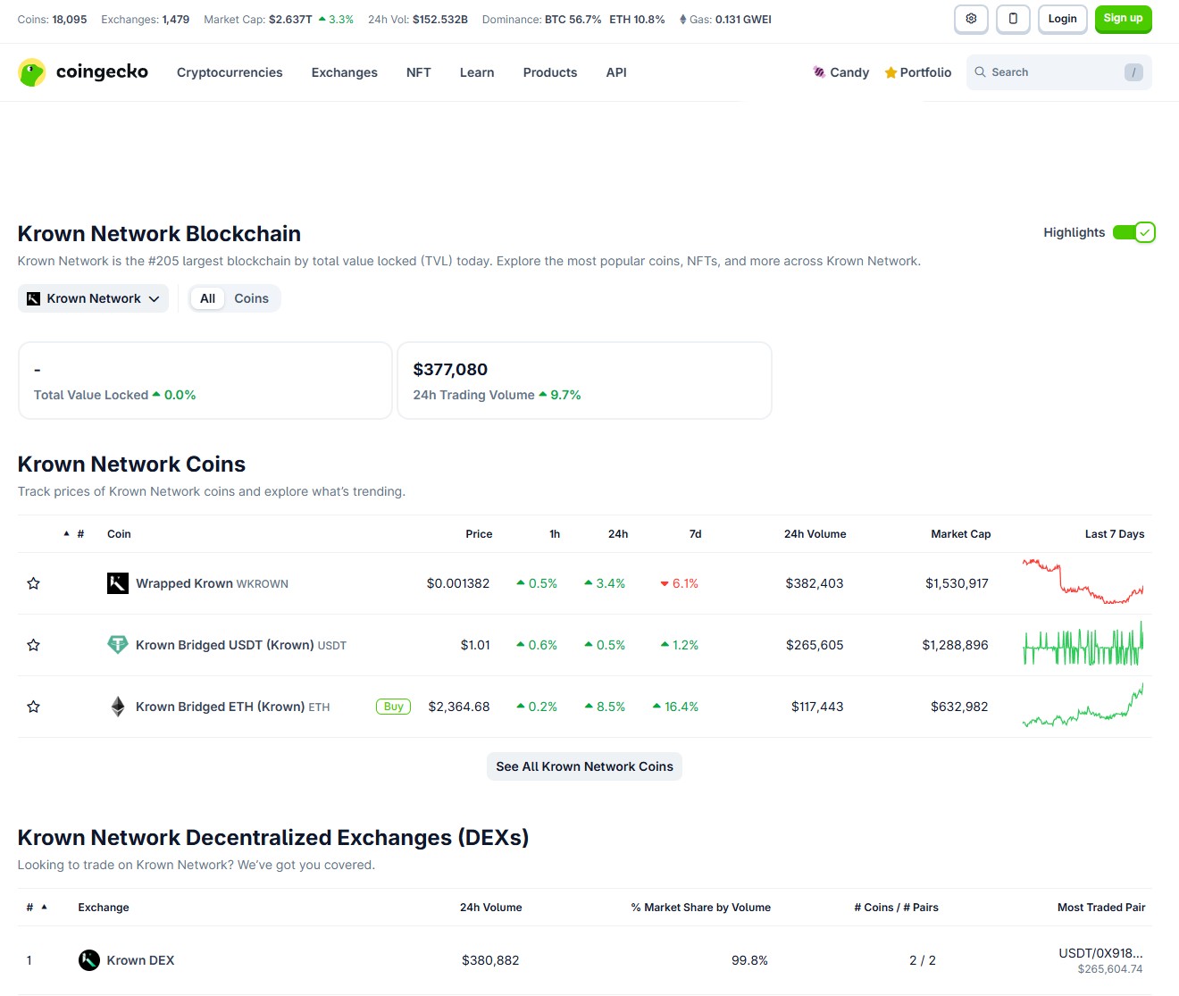 KrownDEX Exchange Page: https://www.coingecko.com/en/exchanges/krown-dex